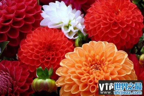 大丽花又叫地瓜花、东洋菊,是多年生草本植物,植株高度在1.5-2米高,花朵顶生在茎干上,花茎最大为12厘米,花期时间在秋季9-10月份。