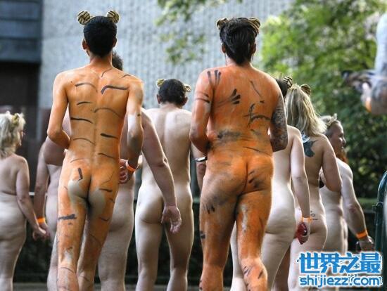 在英国伦敦,300名动物保护者全裸或涂着老虎彩绘在伦敦动物园里跑步,为苏门答腊虎保育工作募集资金。参与裸跑的人们,大部分否是身上涂满了老虎的彩绘,为了保护苏门答腊虎而做出自己的努力。