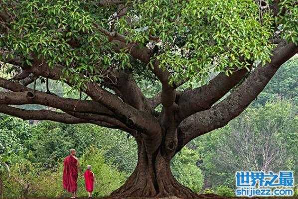 菩提树是桑科榕属大乔木植物,有着革质三角状卵形叶片,在每年的3至4月会开出花朵。因传说佛祖是在菩提树下修成正果,因此印度将其视为神圣之树,并对其实施国宝级的保护。