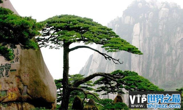 最后是黄山的迎客松,想必大家都很熟悉。它位于黄山玉屏楼左侧、文殊洞之上,高达10米,是黄山四绝之一。它依靠着青狮石而生,一旁的侧枝伸展出来,就像是人们在欢迎远道而来的客人,因此,它也成为了安徽人民热情友好的象征。作为黄山的标志性景观,它已有1300多年的历史了,到现在生长状况都很良好。