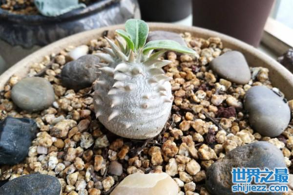 白皮月界是一种较为罕见的濒危物种,一种产自非洲的珍贵花卉,它看起来非常的迷人,就好像是暗夜里的精灵一般。其生长缓慢,花费几十年的时间才能长成株苗,十分珍贵,目前禁止出口,只能前往当地欣赏,而且白皮月界的叶片小巧可爱,根茎短小粗壮,憨态可掬。