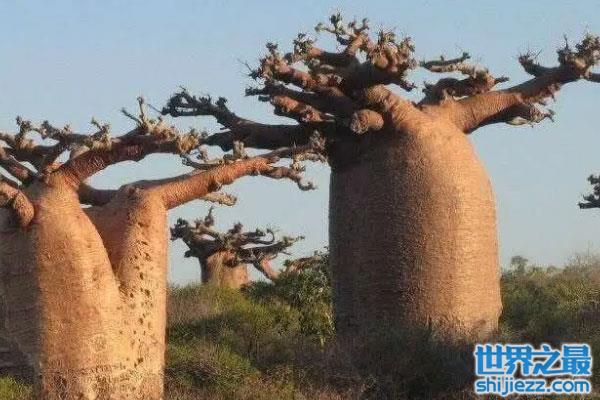 猴面包树主要分部在南非,马达加斯加等一些热带炎热的国家,其最高可以达到20米。在18世纪,法国植物学家就发现了生存了5500年的猴面包树,被当地称作“圣树”。