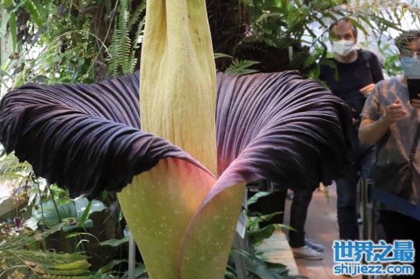 泰坦魔芋也叫巨魔芋,主要分布在印度尼西亚的热带雨林中。其一生只开两三次花,花朵非常大也极为好看,但同时也会散发出一股巨臭的尸臭味,非常难闻,也被叫做“尸花”。