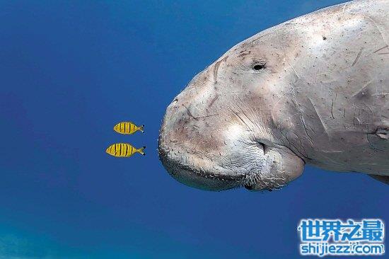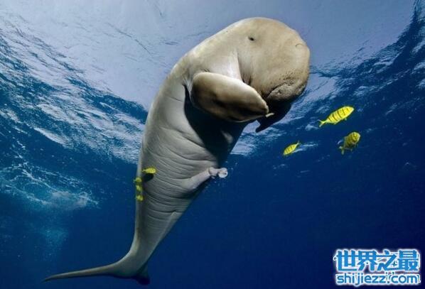 很多现实中人们以为的美人鱼图片,就是看到的这个生物,儒艮是属于海牛目,但是却是海牛目中单独的一个物种,没有亚种,看起来跟海牛很像,但是头又跟大象有点像,只是没有大象的鼻子那么长,但是都有一对突出嘴巴之外的牙齿,其实看起来还是挺萌萌哒的。
