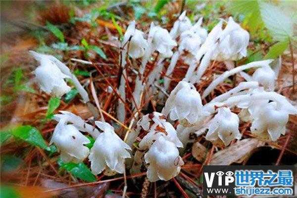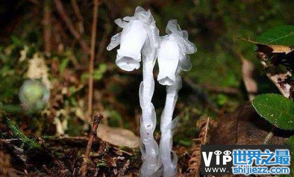 幽灵兰花,也被叫做鬼兰,在1844年被一个比利时人首次发现,因花型酷似幽灵得名。幽灵兰花不长在地上,它的根部就像是一个大吸盘,吸附在腐朽的树干上,茎部紧紧缠绕这树干,它没有叶子,光合作用靠的是它的根部。它的花朵是白色的,形状像是一只跳着的青蛙。因为它的根部和枯树颜色接近,花开的时候,就像漂浮在空中。
