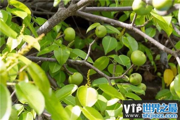 这种有毒的树木,南美洲的人们将其称为死亡小苹果。虽然从口感上来说,毒番石榴树的味道和普通石榴没有任何区别,个头晶莹饱满,并且非常香甜,但是这种树的果实的毒性很强,一般人吃了之后,恐怕来不及送往医院就会毙命。甚至连散发到空气中的树汁都有毒性,也正是因为这非常猛的毒性,进入了世界吉尼斯纪录。
