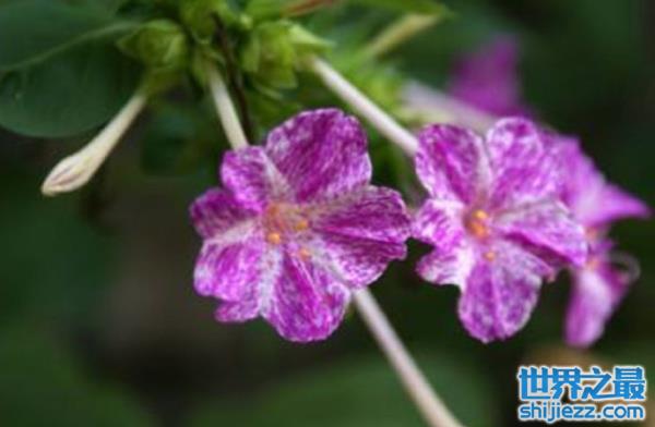 紫茉莉的生命力特别的顽强,即便是烈日和暴风雨也无法摧垮它,第二天就能快速的恢复过来。每当临近傍晚的时候,紫茉莉的花瓣就会慢慢的舒展开来,等到完全天黑,花朵就会挂满枝头,十分的好看。