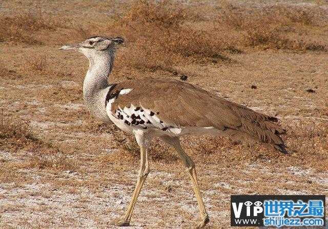 南非大鸨产于非洲,体重最大达公斤,也是可飞行鸟类中最大的一种,是十大世界上最大的鸟之一。雄鸟个体比雌鸟要大很多。南非大鸨常群栖于草原地带,以昆虫为食,有时也吃蜥蜴、蛇、植物种子和浆果。