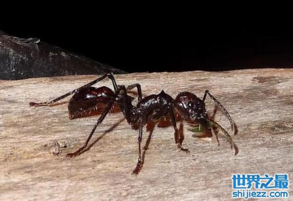 子弹蚁是世界上最大的蚂蚁,它们多见于尼加拉瓜和巴拉圭的雨林。子弹蚁以其痛苦的刺痛闻名,在被咬之后,受害者会想被枪击的感觉,事实上,子弹蚁叮咬所带来的刺痛比蜜蜂要强30倍。