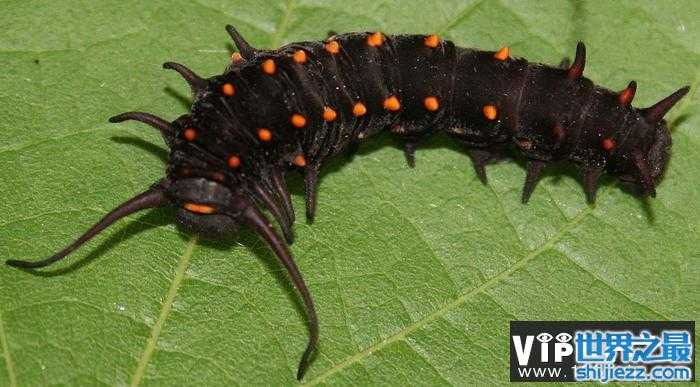 加州河豚燕尾蝶是一种迷人的荧光蓝蝴蝶,常见于北美和中美洲。但是,它的幼虫是一种奇怪的生物,眼睛有黑色的遮阳帘,还有四排钝角覆盖着它的身体。这些生物的另一个有趣之处在于它们主要以有毒植物为食,并在体内保留这些叶片中的毒素。