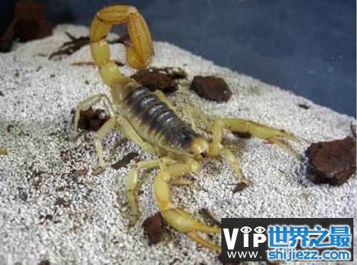 又叫以色列杀人蝎,出没于沙漠,性格凶恶、攻击速度很快。毒性也很强,几乎是世界上最毒的蝎子。在中东和北非几乎70%以上的蝎子致死案件都与这种蝎子有关。