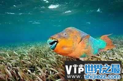 鹦嘴鱼主要分布在热带与亚热带珊瑚礁海域,它长着许多小牙齿,与鹦鹉的嘴十分相似,因此得名,喜食各种珊瑚。