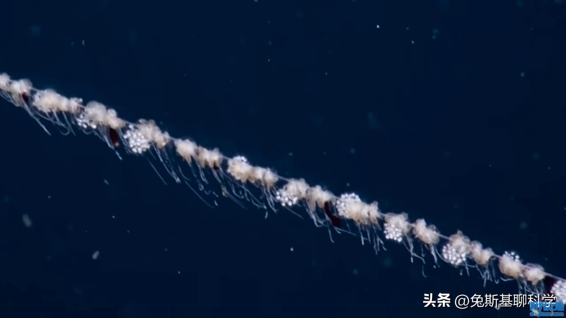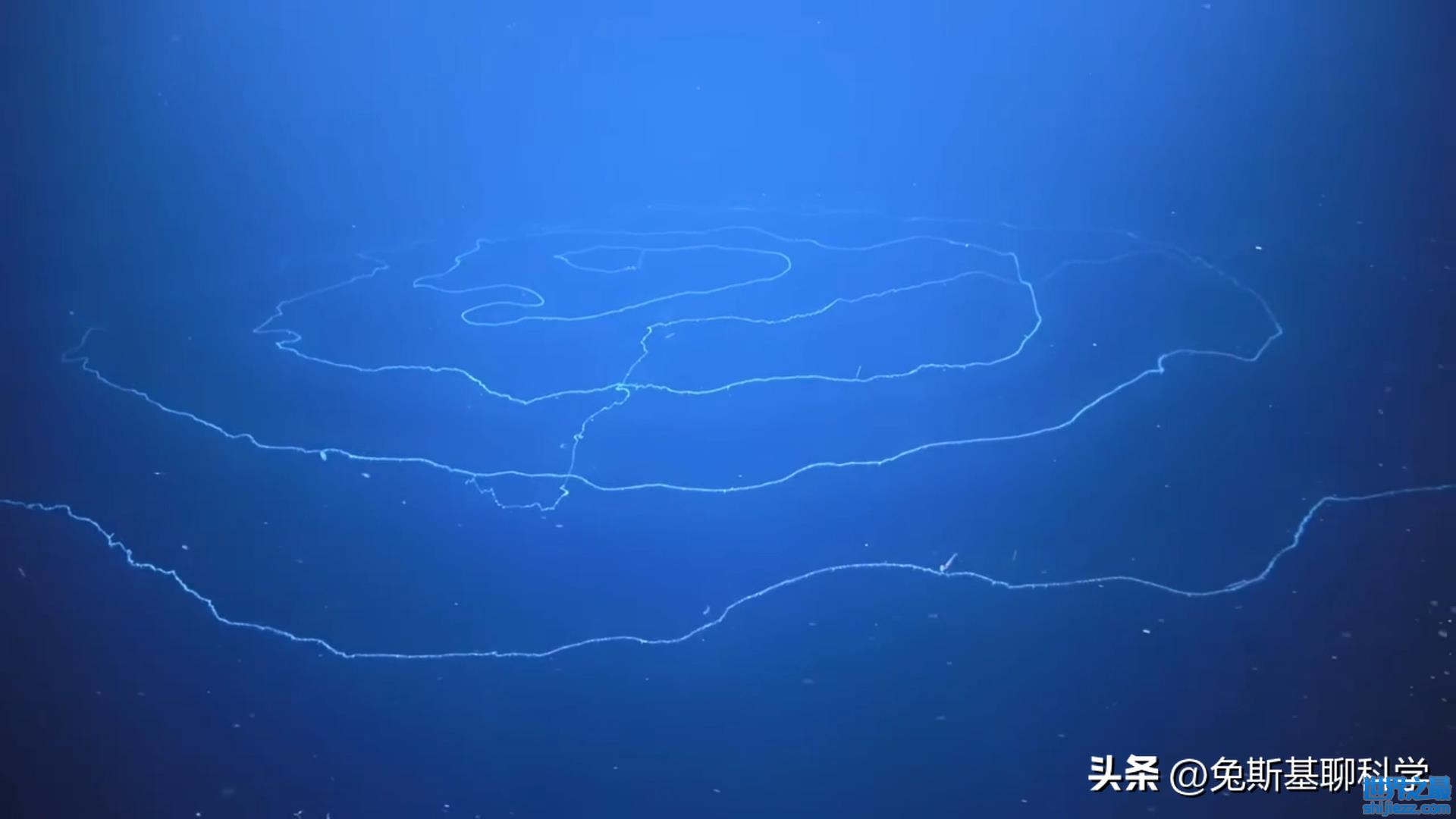 施密特海洋研究所在西澳大利亚宁格罗海底峡谷水深630米处拍摄到了这样一种生物。它就像一根发光的绳子一样一圈一圈地环绕在一起,外环直径估计达到了15米。这种神奇的生物叫做管水母。研究人员估计这次拍摄到的管水母长度将近119米。如此一来,这可是世界上最长的动物啊!