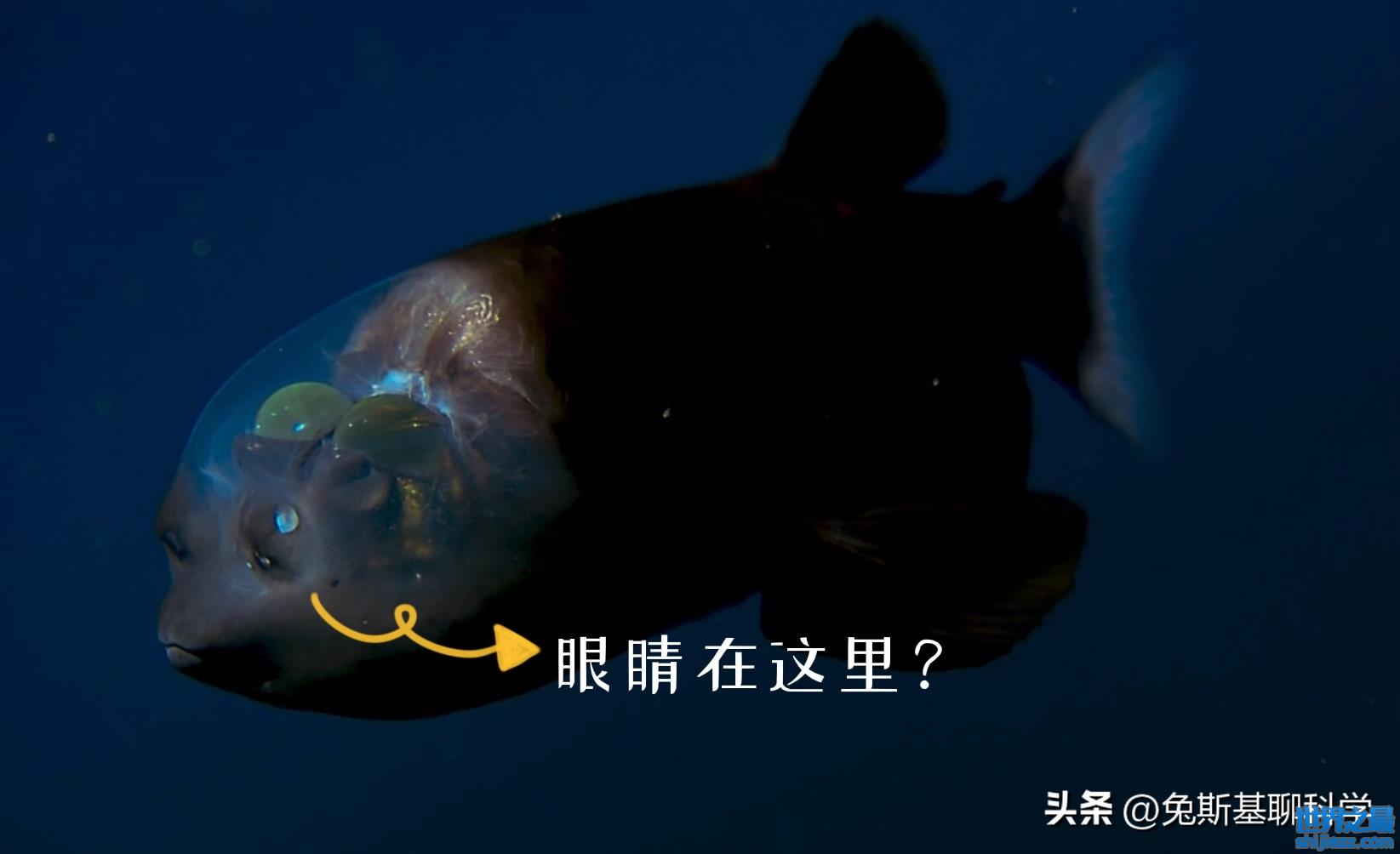聊到这里,考一考朋友们的眼里如何?管眼鱼的眼睛在哪里呢?你是不是觉得这条鱼有种忧郁的眼神?其实,让它自带忧郁表情包的两个小点并不是它的眼睛。那只是它的鼻孔而已。而透明保护罩中的那一对绿色的才是它的眼睛!