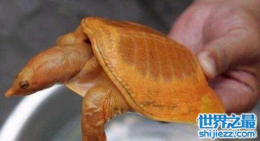 一般的鳖都是黑青色的,因为常年栖息在水中,所以这种颜色更容易保护自己不被发现。而黄金鳖是普通鳖的一种变异,不管是鳖壳还是鳖身都是通体金色,极为罕见。据专家说,这种是鳖的变异现象,但是只有几万分之一的几率,是鳖中难得一见的珍品。