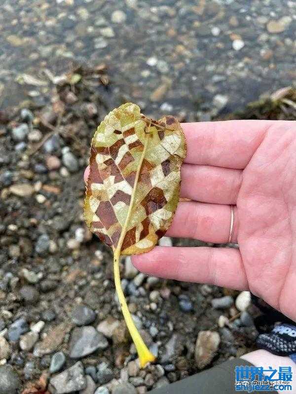 8、有着迷彩色的树叶,难道这片树叶也在躲避自己的天敌吗?
