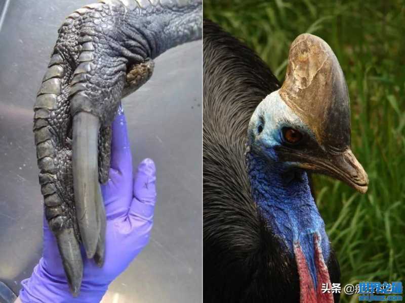 3、看到食火鸡的爪子就知道恐龙并没有完全灭绝,而是有一部分进化成了现代的鸟类。