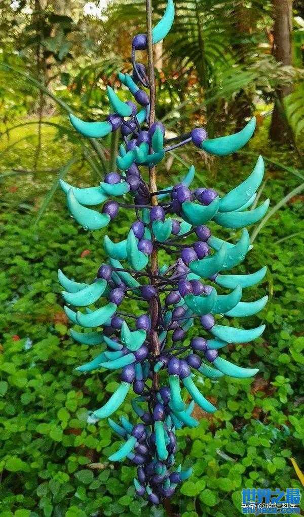 2、这株有塑料质感的植物叫翡翠葛,由于果实是特殊的蓝绿色确实不像自然界的颜色,这难道是它的保护色吗?
