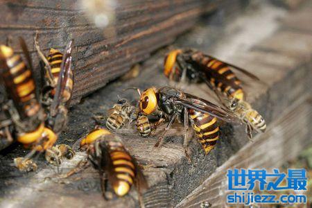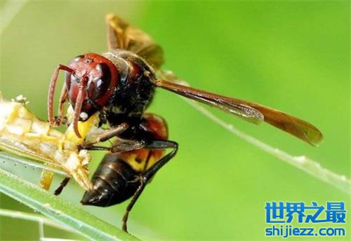 日本大黄蜂是世界上最大的黄蜂,不仅体型大相应的毒针也比较长比较大。它们的毒液是一种具有强烈腐蚀性的酶物质,可以分解人体组织细胞,所以它也被很多人称之为“来自地狱的大黄蜂”