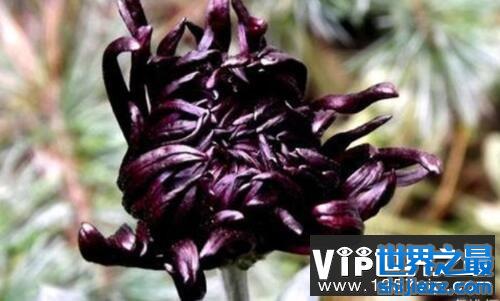 墨菊的花色成深紫色,常常盛开与秋季,它初花期为荷花型,盛花期为反卷型。它 的花瓣比较薄,颜色则黑里透红,花色如墨,十分特别。