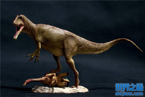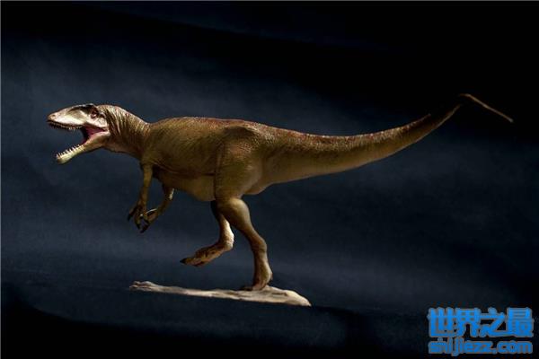 特暴龙,它可是霸王龙的远方亲戚,它们主要生活于白垩纪晚期,属于暴龙科的一种。但是在这所有的暴龙科中,最长十二米,它的前肢算是短小的,可身材却是又粗又壮的,超强的咬合力能将猎物瞬间就撕裂。