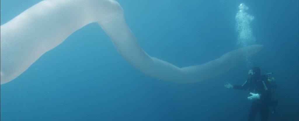 根据科学报道称,摄影师进行了长达10年多的搜索,根据数据显示,该生物长达约8米(约26英尺),但是看久一点也像是“龙”的身体一样,当然这个只是对该生物的一个描述,世界上有没有“龙”的存在还是一个争议的话题,根据科学家们的确定,其实该看起来像是“油条”的生物是由 一群微小的海洋动物组成的。它们连在一起成为一个自由浮动的群体。