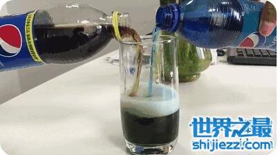 2、颜色和我们平常喝到的可乐不同,是蓝色的,发个朋友圈,也好装一把。