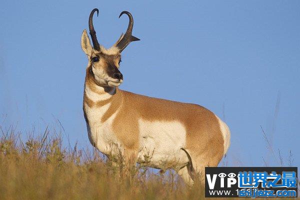 叉角羚是北美地区奔跑速度最快的动物,最高时速可达80千米/小时。叉角羚不仅有着惊人的速度,还有着令人叹服的耐力,正是这两项的结合才能让叉角羚一次又一次的躲避天敌的追捕。