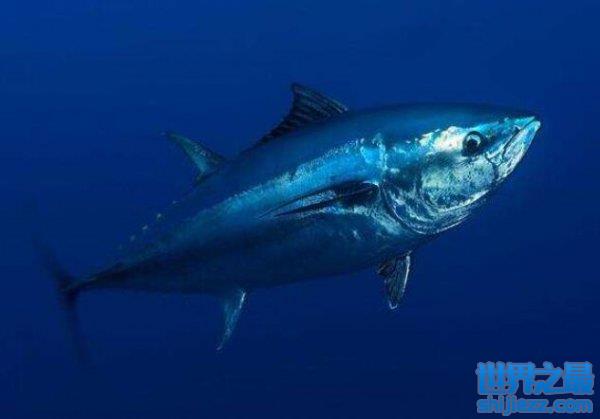 大西洋蓝鳍金枪鱼被国际自然保护联盟列为濒危物种红色名单,为硬骨鱼纲辐鳍鱼亚纲鲈形目鲭亚目鲭科的其中一种,广泛分布于北半球的太平洋和大西洋海域中,栖息深度0-9850米,体长可达458厘米,为大洋性洄游性鱼类,成群活动,属肉食性,以鱼类、头足类、甲壳类为食,可做为食用鱼、游钓鱼及养殖鱼类。