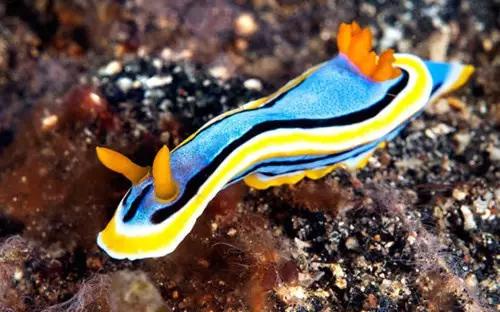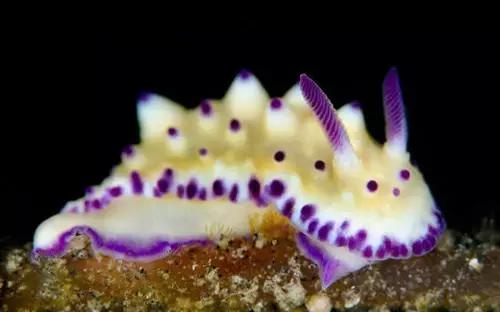 4.这是在印尼苏拉威西岛蓝壁海峡的潜水点拍摄到的一只海蛞蝓。海蛞蝓是螺类的一种,这是科学家发现的第一种可生成植物色素叶绿素的动物。