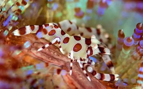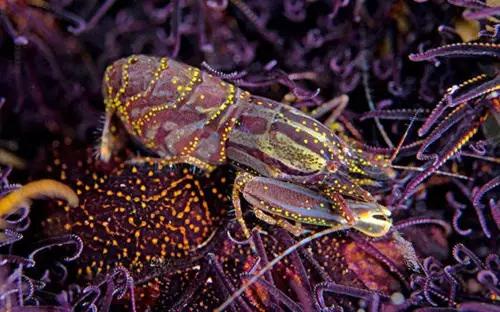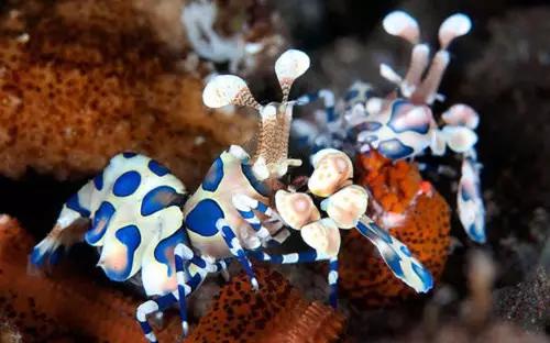 1.一对夏威夷海星虾,这是一种会改变食性的虾。当改变食性时,它的形态亦会随之改变,脚似一对很阔的衫袖,像盾一样生在外面。