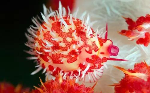 9.这是一只在海鸡冠上伪装的海兔螺。曾被太平洋地区的人作为首饰,并用以装饰独木舟船头,由此可见海兔螺的颜值还是很高的。