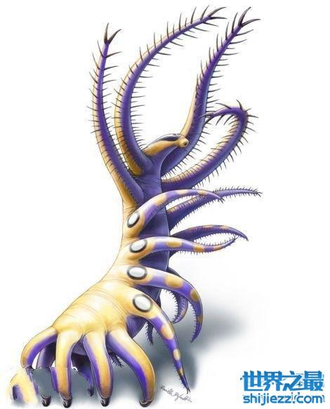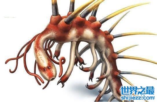 怪诞虫这种寒武纪十大恐怖生物之一的动物长相是十分的奇特的,这种动物寒武纪的动物成熟的一般都在3.5厘米长,它有七对刺的脚爪,背后有柔软的触角,因为化石在世界各地都有说明它是一种非常常见的动物。