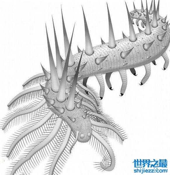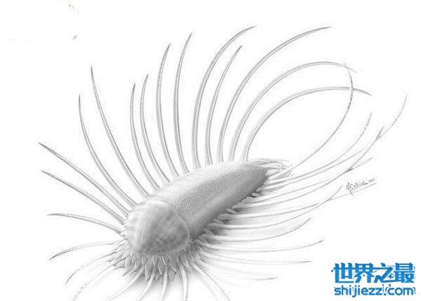 这个长相奇特,有腿毛的家伙就是寒武纪最早期的欢呼虫,这种寒武纪十大恐怖生物之一的生物是没有外壳保护的,这与当时的很多的生物都有不同,有科学家称它可能是用特殊毒液防御以及捕食。