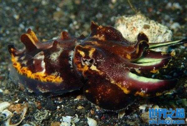 听它们的名字你不要误会,以为它们跟喷火鱼一样,能喷出“火焰”,其实它是因为因其外形酷似火焰而得名。火焰乌贼,也可称为火焰墨鱼、火焰鱿鱼,是一种栖息在印度尼西亚、新几内亚、马来西亚与澳洲北部热带海域的乌贼。它们是世界上唯一有毒的乌贼,且毒性很强,更有趣的是,火焰乌贼还会用腕足行走,这一独特之处使其成为宠物爱好者的奇异宠物。