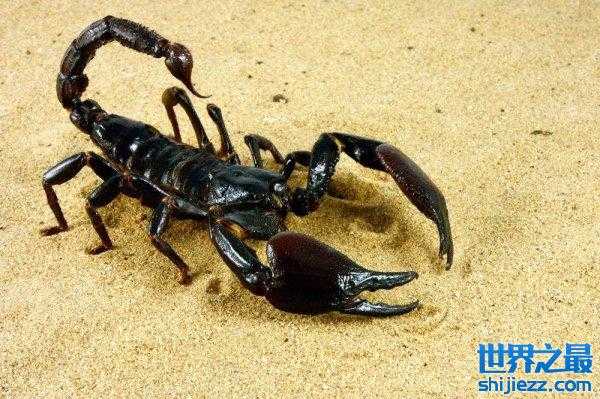 蝎子外形好似琵琶,世界各地均有分布,多生活于片状岩杂以泥土的山坡,居住在天然的缝隙或洞穴内;它一般是昼伏夜出,取食无脊椎动物,如蜘蛛、蟋蟀、小蜈蚣、多种昆虫的幼虫等,它的尾巴有毒刺,所以,任何蝎子都有毒,只是毒性大小不同而已。