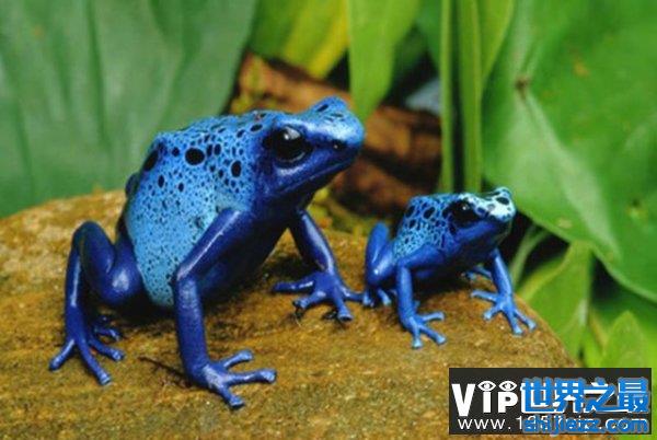 毒镖蛙身体呈蓝宝石色,是原产自中南美洲的箭毒蛙科家族成员,毒镖蛙这个名字在这个家族中较为常见。与绝大多数青蛙有所不同的是,箭毒蛙白天的时候较为活跃,身体通常呈明亮的颜色。颜色很漂亮,但是人们必须对它们敬而远之。毒镖蛙的背部分泌出一种粘液状的神经毒素,防止自己被大型食肉动物捕杀。每一只毒镖蛙分泌的毒素足以杀死10个成年人。