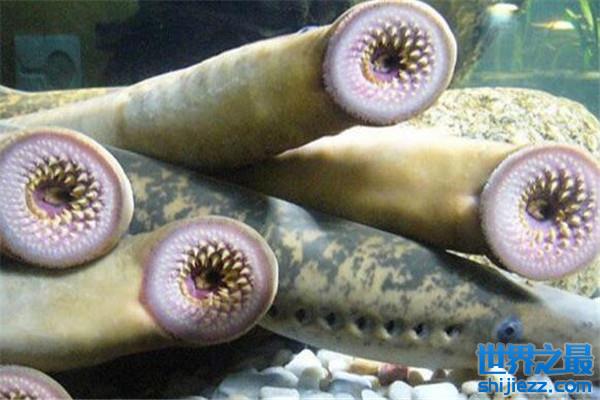 七鳃鳗又名僵尸鱼,是史前生物,比恐龙还早2亿年面世。它的特点是口部有漏斗状吸盘,没有上下腭,口内长满锋利的牙齿,好似一个“电动小圆锯”。被它们吸附的生物,往往身体被戳破,血液和肉体逐渐被吸食,吸到宿主崩溃为止。