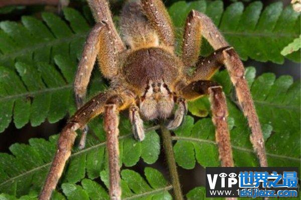 巴西漫游蜘蛛,是分布于南美洲巴西等地的一种大型蜘蛛,它是世界上最大毒性的蜘蛛,被世界吉尼斯纪录所收。这种蜘蛛具有侵略性,毒性很强、且非常致命,毒液可以麻痹神经导致呼吸问题。
