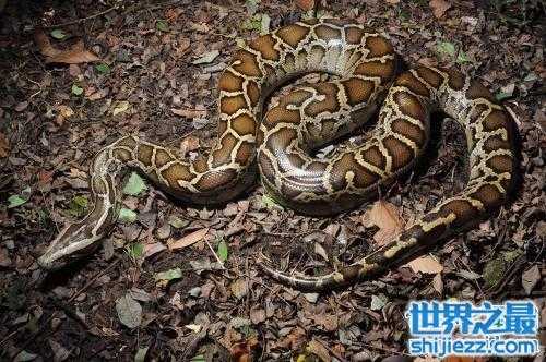 世界上体型最大的蛇类之一---缅甸蟒,它的一生都能够生长,体型巨大,本是属于东南亚的物种生存在热带雨林之中,后来被引入到美国的佛罗里达州,缅甸蟒在这适宜生存的沼泽地中生存繁殖,到后来已经难以控制其繁衍速度,庞大的数量使得缅甸蟒的猎物都难逃一死,令人畏惧。