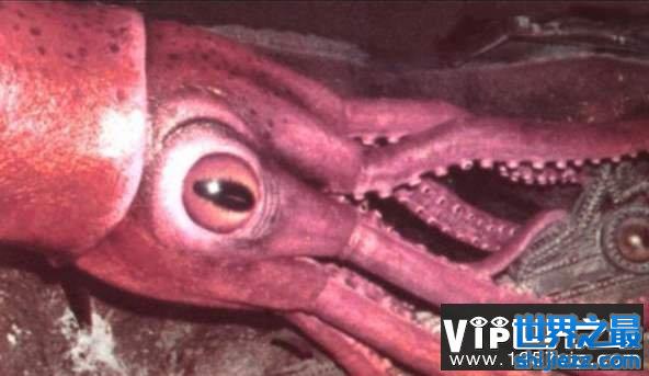巨枪乌贼,又叫大王酸浆鱿,典型的深海巨鱿,是同科动物里最大的一种,是世界上最大的无脊椎动物,她们主要分布于围绕南极大陆海域,偶尔向北方分布到南非外海,大多在南极海域周围2000米的深海栖息。。这大眼睛上面还长着一种会发光的东西,主要是要来应对天敌抹香鲸。大眼睛通过发现围绕在抹香鲸周围的微生物,从而判断出敌人的位置。早在2007年的时候,新西兰官方报道,新西兰船只在南极抓获了一只大王酸浆鱿。这只大王酸浆鱿身长包括触手就有4到5米长,重达490斤!这还是当时捕获到的最完整的样本。
