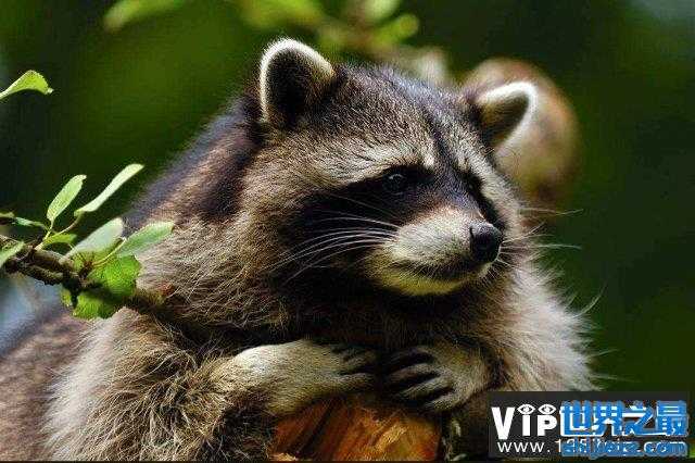 浣熊分布于北美洲和中美洲,不仅是一种珍贵的毛皮兽,还是世界上最爱干净的动物。浣熊身体粗大,四肢短小,体长达65〜75厘米,身体和四肢 都呈灰色,略带黑色。尾巴长约25厘米,上面有黑白相间的 环纹。经常在树上栖息,喜欢 在夜间活动。浣熊喜欢吃软体 动物、蟹、鱼虾以及植物性食物等,每次吃东西时,它总会把食物放在水中洗一下,非常爱干净。