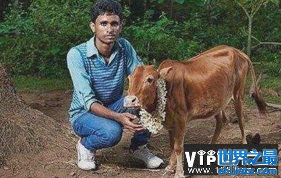 上面的这张图是一只母牛,母牛的名字叫曼尼齐耶曼,这种母牛的起源地是印度喀拉拉邦地区。这只母牛仅仅只有六岁,身高也只有 61.5cm,是这个世界上最小的牛,这个体积最小是被吉尼斯世界记录所承认的。