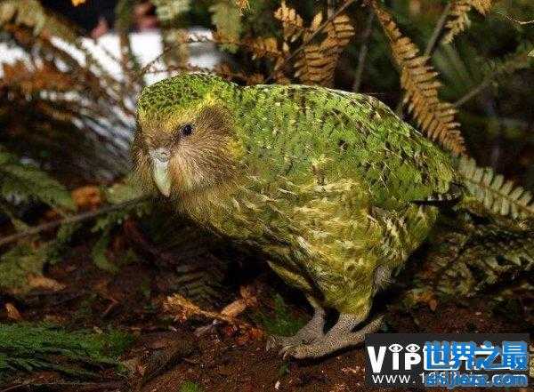 这是世界上唯一一种不会飞的鹦鹉,鸮鹦鹉的寿命很长,雄性鸮鹦鹉4岁后才开始繁殖,雌鸟要等到6岁左右。他们的寿命可以超过90年。