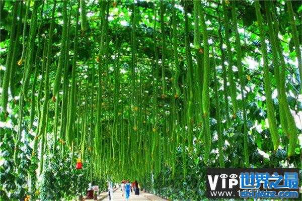 丝瓜是很多人夏季特别喜欢吃的一种食物,丝瓜具有清热解火,美容养颜等众多效果,在炎炎夏季喝上一碗丝瓜汤,就是一种享受,正常的丝瓜也就在30厘米左右,你知道世界上最长的丝瓜有多长吗?现在世界之最网小编为大家介绍世界上最长的丝瓜位于我国秦皇岛市丝瓜试验田,其长度超过4米,它还荣获吉尼斯世界纪录。该丝瓜试验田长近150米,种植了3000多棵长丝瓜,每到夏季,一条条长长的丝瓜,像绿色的瀑布凌空直下,游人漫步其中如一帘幽梦,景观迷人!