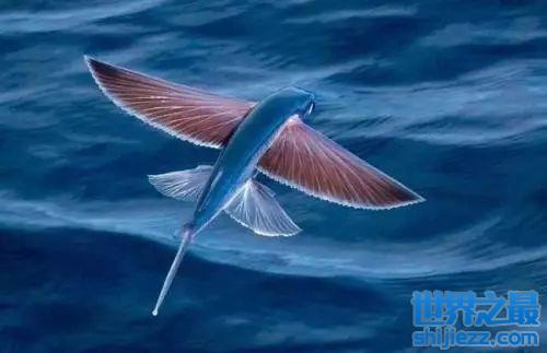 下面要说的飞鱼,它是一个体型非常小的鱼类,但它在海洋上并不是靠飞的,也是依靠自己的翼状鳍滑翔,而稍微强壮的飞鱼可以滑翔,400米远,一般的可以滑翔180米左右,这样的滑翔并不是他刻意要做的,而是为了摆脱天敌对它的捕杀,他在海里行进时可以达到每秒10米,是一个非常快的海洋生物。