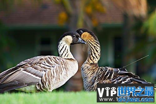 夏威夷雁是夏威夷州州鸟,这一特有物种大约在50万年前,加拿大雁迁徙到夏威夷后进化繁衍而来,和加拿大雁相比,夏威夷雁没有迁徙的习惯,因此翅膀和脚蹼都有一定退化。人们经常看到它们从觅食地飞到筑巢地,这些食草鸟类以种子、水果、花朵和叶子等为食。人类的捕猎和入侵物种的捕食大大减少了夏威夷雁的数量,在上世纪50年代,夏威夷雁曾濒临灭绝,数量甚至一度锐减到只有30只。经过当地政府和动物保护者们的长期努力,它们的数量有所增加。今天,它们是世界上最稀有的物种,被国际自然保护联盟列为脆弱物种。