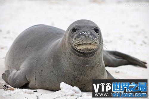 地球上最稀有的海豹物种,仅剩几百只,只在夏威夷发现。夏威夷僧海豹总是聚众懒洋洋地在海滩上晒太阳,在水中的时候,它们可是游泳小能手呢!得益于平滑的外表和流线型的身材,夏威夷僧海豹在水下运动项目上非常有优势,能毫不费力地在水中转来转去。但到了陆地上,夏威夷僧海豹善于游泳的四肢只能起到支撑作用,只好缓慢地匍匐爬行。如果幸运的话,你可能会发现这只海豹在夏威夷海滩的阳光下晒太阳。海豹幼犬特别脆弱,因此绝不能受到干扰。