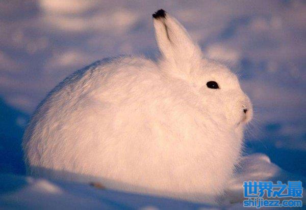 北极兔跟普通野兔不一样的是它们的毛发更加浓密而又细腻,而且体们的体型一般较大,腿也比较长,当遇到危险的时候会伪装成一个雪球滚走。北极兔栖息于北美北部寒冷的地区,在雪地上行走时如履平地,弹跳力十分惊人,在遇到危险时,北极兔会跳起来,并且像袋鼠一样只用后脚快速跳跃,奔跑起来的样子像羊驼,再加上那双大长腿,简单说就是迷你版羊驼。在寒冷的冬天,北极兔会长出两层厚厚的毛,里层为茂密的短毛,可以保温,外面覆盖着蓬松而又细的长毛,像防护罩一样,既可以防寒又可以防止脏污碰到身体,从远处看除了耳尖处是黑色的,其他地方均为白色,和冰天雪地浑然一体。