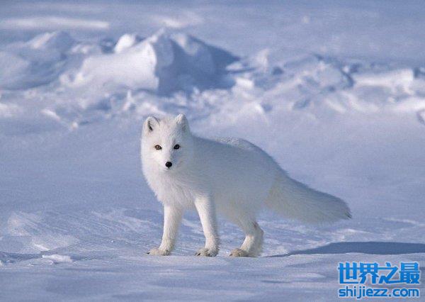 北极狐是一种非常美丽的动物,同时它也是一种非常耐寒的动物。它身上长着一层洁白光亮的毛发,帮助着它们的身体抵御外界的严寒。